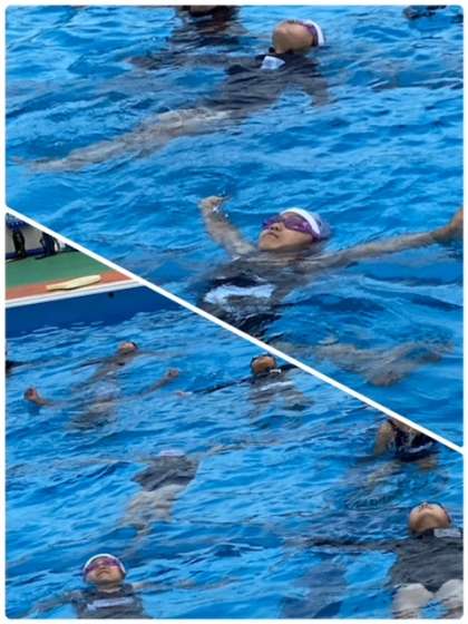 もしもに備えて、背浮きも練習しています。