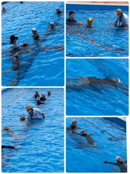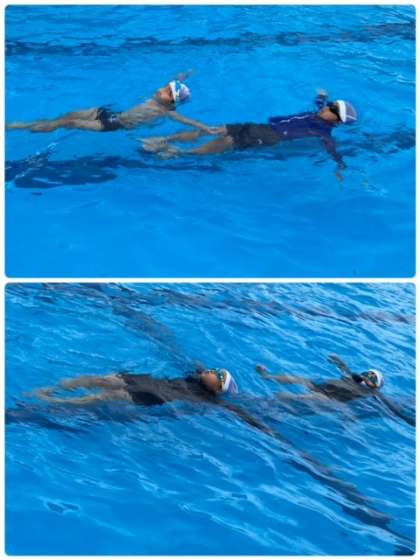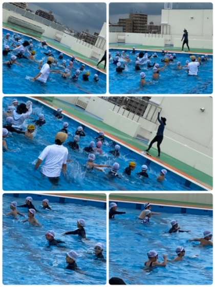 もしもに備えて、背浮きも練習しています。1年生でも上手にできている子もいます。だんだんと慣れてできるようになればと思います。