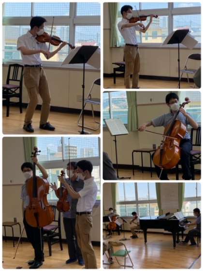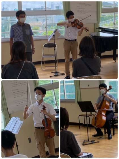 鑑賞指導のポイントの話とともに、実際の演奏を聴きました。生の演奏を間近で聴けて、とても心が落ち着きました。今日の経験を今後の指導に活かしていきます。子どもたちにも演奏を聴いてもらう機会は計画していますので、お楽しみに。