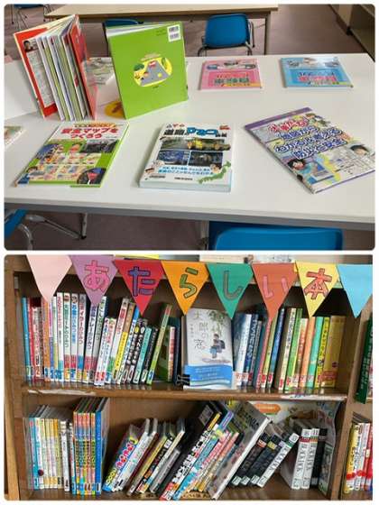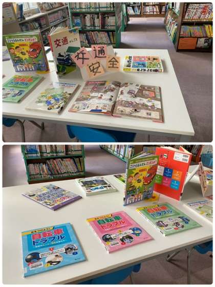 図書館司書の清田先生が、来月の交通安全指導に向けて、図書を紹介してくださっています。