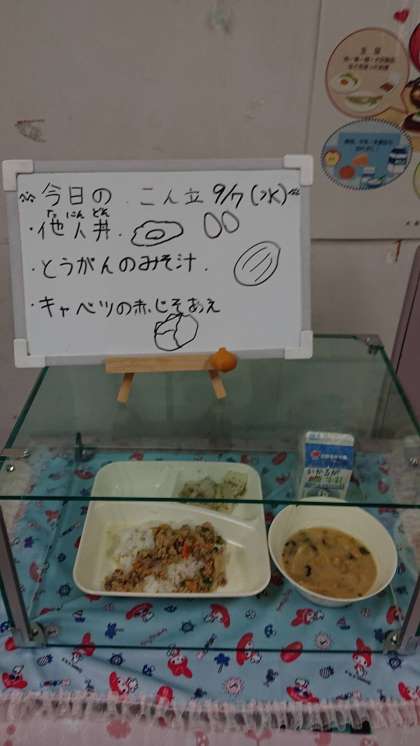 ご飯におかずをのせていただく他人丼は、子どもたちには人気です。