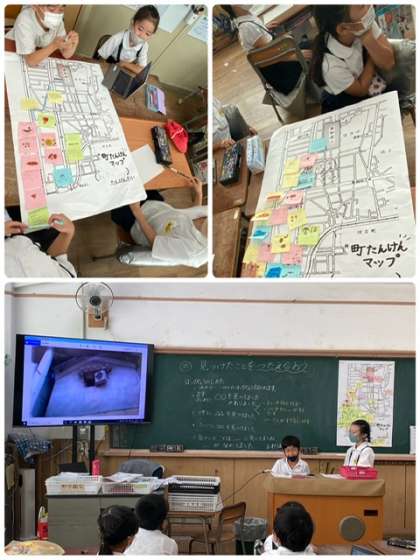 学校に戻ってから、それを地図にまとめて振り返りを行っていました。上手にまとめていました。