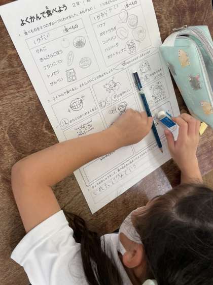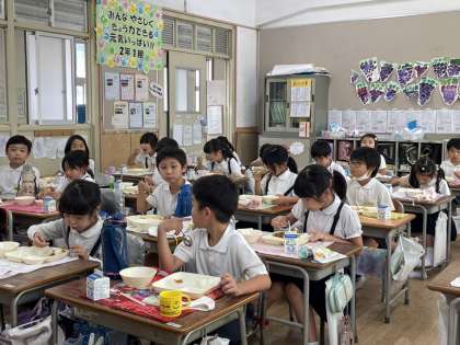 今日は、いつもよりしっかりとかむことを意識して、給食を食べました。