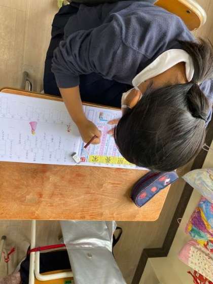 筆順の確認、熟語についても確かめています。