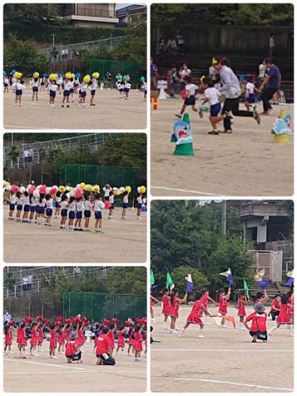 8日、本校運動場で、東粉浜幼稚園の運動会が開催されました。コロナ対策として、三部制で開催されました。