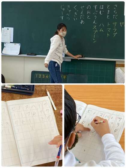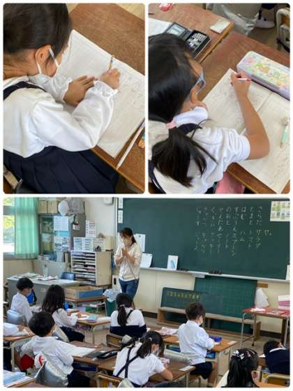 伸ばすところや、小さい字で書くところなど、気をつけるところを確かめながら学習をすすめていました。
