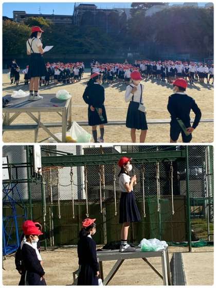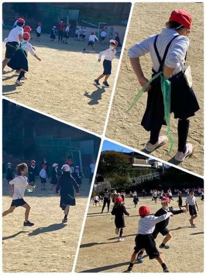 今日の集会は、1、3、5年生による、しっぽ取り鬼ごっこです。と言っても、鬼は決めずに、互いのしっぽを取り合うゲームです。取られても、他の人から取り返せばOK。