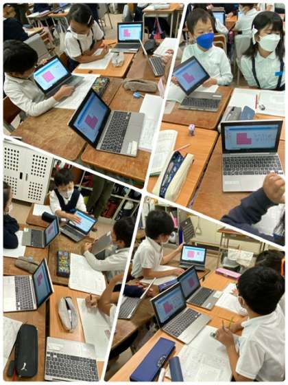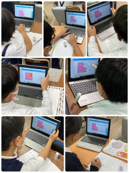どうすれば、今までに習った長方形や正方形の面積の求め方になるのかを見通して、考えていました。