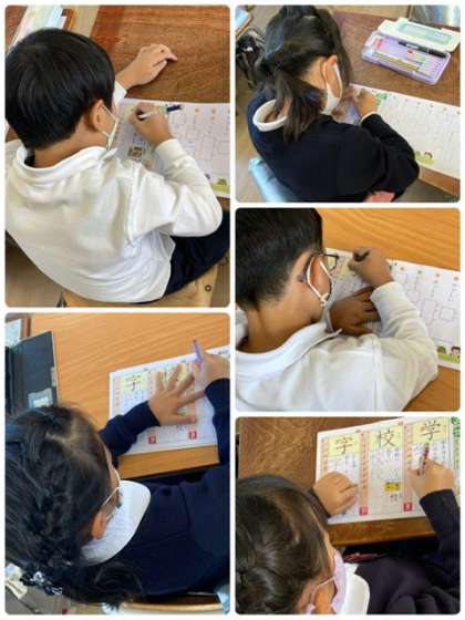 熟語を作ったり、筆順を覚えたりした後、丁寧に書いて覚えていきます。