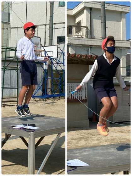 3時間目の後の休み時間のなわとびチャレンジは、1、4、6年生です。