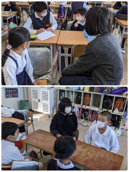 6年生は1年生と目線を合わせて話し、名前を知った後は、「勉強今何してる?難しい?」「何して遊んでる?」などいろいろ聞いてあげていました。次は一緒に遊ぶので楽しみにしている様子でした。