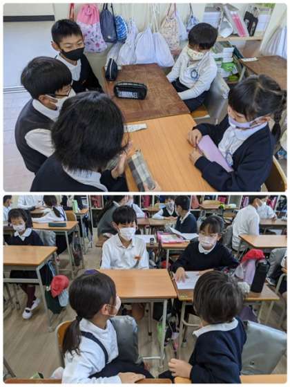 今月末の東粉浜フェスティバルに向けての異学年交流会です。特に上の学年が優しくリードしてすすめていきます。