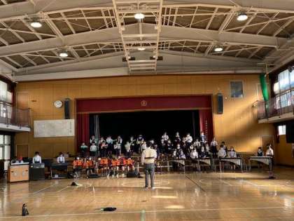 ?来週の交歓音楽会に向けて、合唱、合奏の学習をしていました。まだまだ練習途中ですが、たくさんの保護者の前で上手に発表できていました。