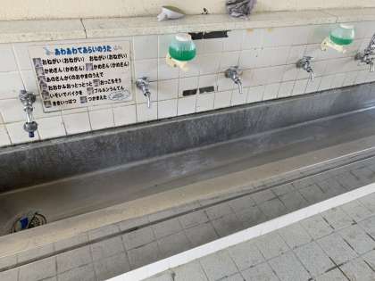 清掃前と清掃後のて洗い場の様子です。違いが出ています。写真を比べて見てください。