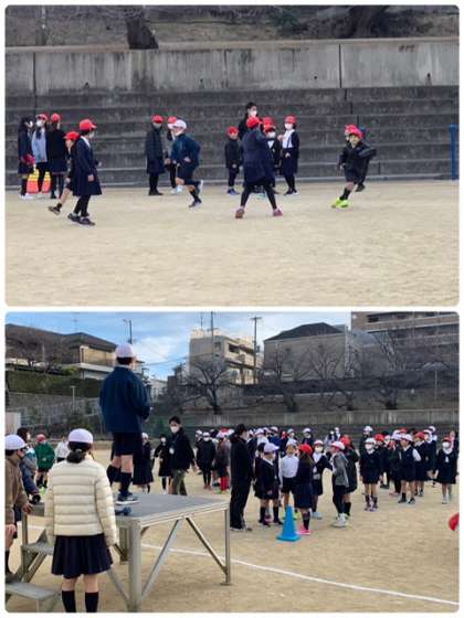 始めは集会委員がオニとなって、みんなを追いかけていきました。