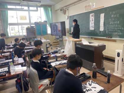 3年生が書きぞめをしました。今までに習ったことを生かし、「明るい心」と書きました。