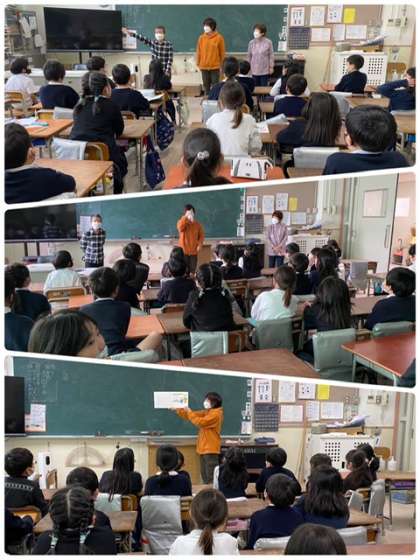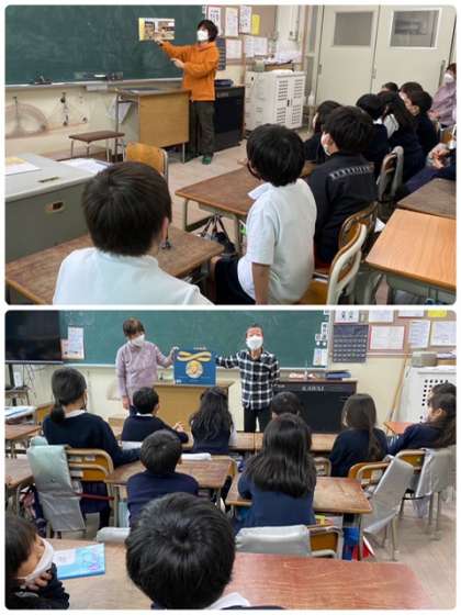 おはなしパレットさんに読み聞かせに来ていただきました。「チリンチリン」とベルの合図でお話の世界に入りました。話し方が面白くて、選んでいただいた本も3年生にぴったりで、みんな夢中で聞きました。