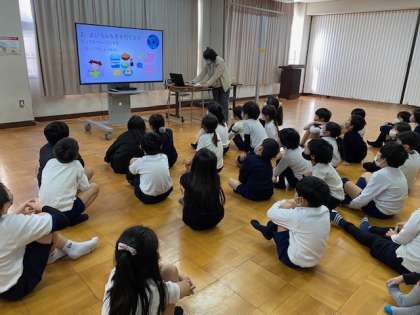 計測する前に、体にとって大切な、保健のお話を保健室の先生から聞きました。