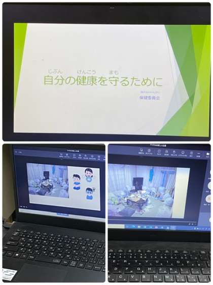 teamsで、全校に保健委員会が作成した動画を配信して視聴して、学校保健委員会として発表しています。