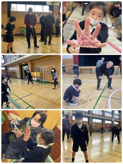地域のシニア会の方々30名ほどお越しいただき、遊びを教えていただきました。けん玉、こま回し、お手玉、おはじき、あやとりなど。