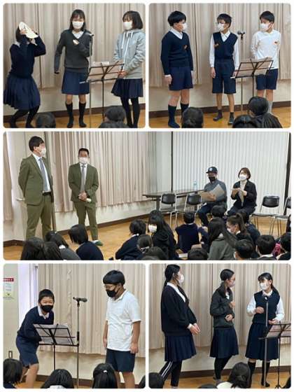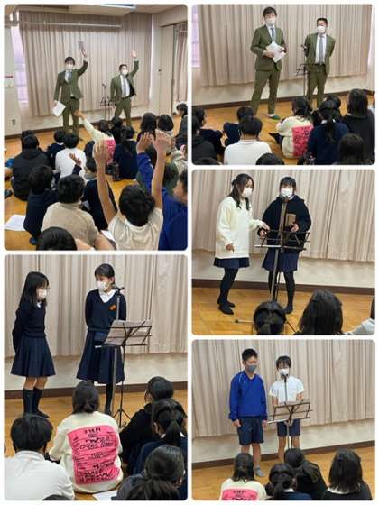 ? しっかり練習したら、多目的室に移動して、いよいよみんなの前で発表です。