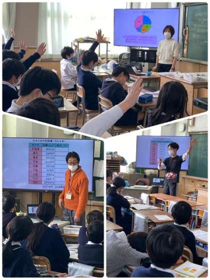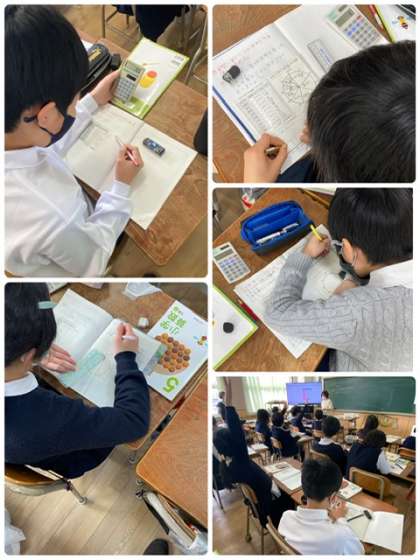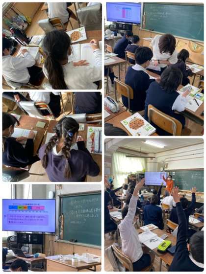 割合を計算して、帯グラフや円グラフに表すというところです。表し方の約束ごとに気をつけながら、しっかり取り組めていました。
