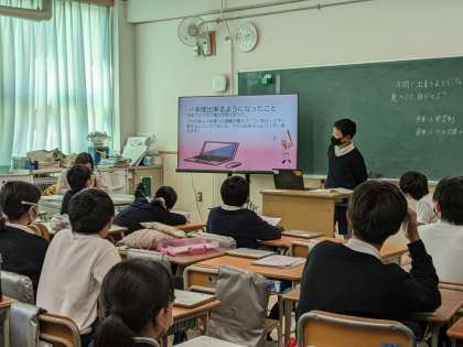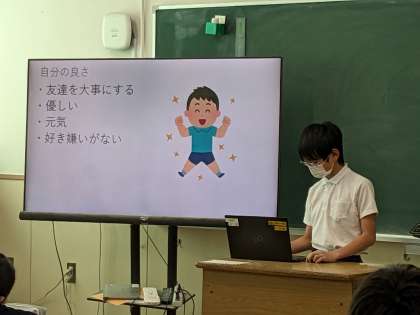 道徳「1年でできるようになったこと」「自分のよさ」をパワーポイントを使ってアイディア豊かなそれぞれのアレンジで作り、皆に発表しました。