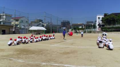 運動会の練習、各学年とも、子ども達は暑さに負けず頑張って練習しています。