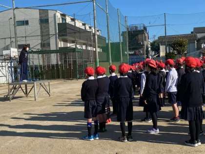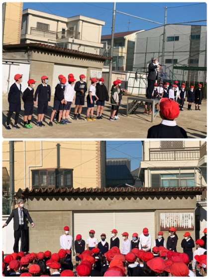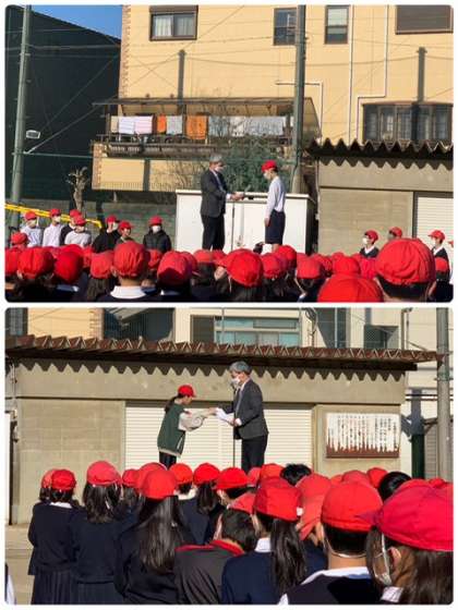 校長先生から、今週から3月になるのでしっかりまとめをして進級に備えましょうというお話と、昨日の住吉区ドッジボール大会の結果を伝えると同時に頑張った皆さんの表彰がされました。また、大会で準優勝したガンバーズも表彰されていました。