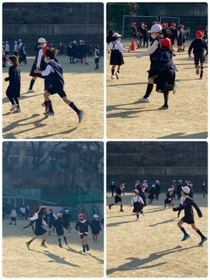 今日は、1、3、5年による3色おにごっこを行いました。一生懸命運動場を走り回り、楽しんでいます。