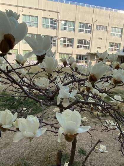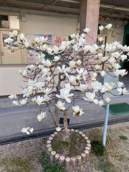 中庭の白木蓮が、満開です。
