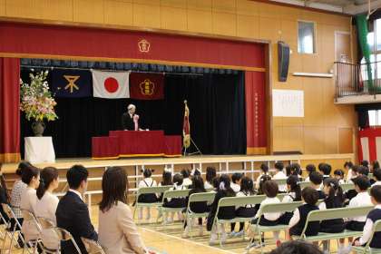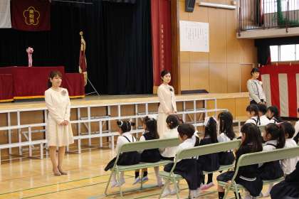 担任発表のあと、在校生代表として2年生が立派にお迎えの言葉と歌を発表することができました。この1年間の成長を感じることができました。