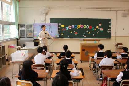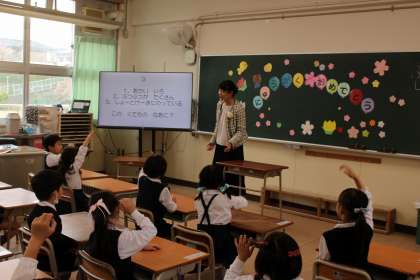 教室に戻ったら、さっそく担任の先生と一緒に過ごしました。