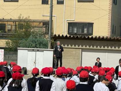 2年生から6年生も、今日から新学期が始まりました。校長先生から、昨年度末に退職された方や異動された方の紹介があった後、今年度より着任した教職員の紹介がありました。