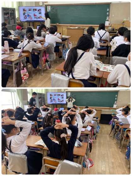 5年生初めての外国語科はリリアン先生の授業でした。色々な国の「こんにちは」を言ったり、コミュニケーションをとるときに大切にしたい4つのことを確認したりしました。