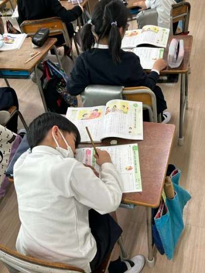 今日、3年生が道徳の授業をしていました。内容をしっかり考え、思いやりのある意見を発表でにていました。