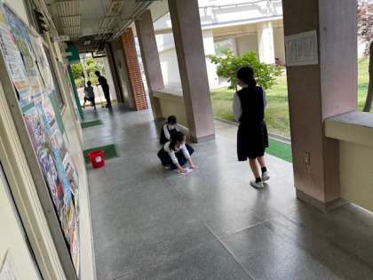 ?職員室の前の廊下を、2年生が一生懸命にきれいにしていました。廊下だけでなく、心もきれいになります。みんなで学校を美しくしていきましょう。
