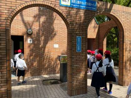 東粉浜の子ども達は次の活動に備えトイレ休憩です。