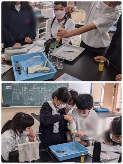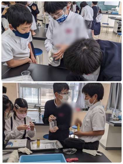 自分たちで方法を確認しながら、実験を進めます。迷いや失敗も問題ありません。成功して予想した結果が得られた時の達成感は、実験の醍醐味です。技能の向上と思考の深まりを期待します。