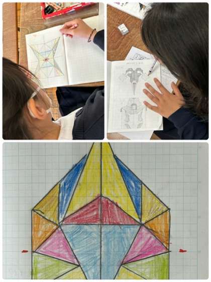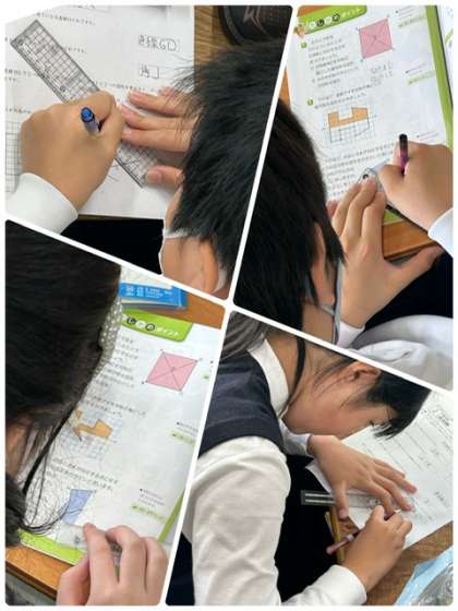 線対称と点対称の違いに気をつけながら、作図をしていました。よく考えて集中して取り組めています。