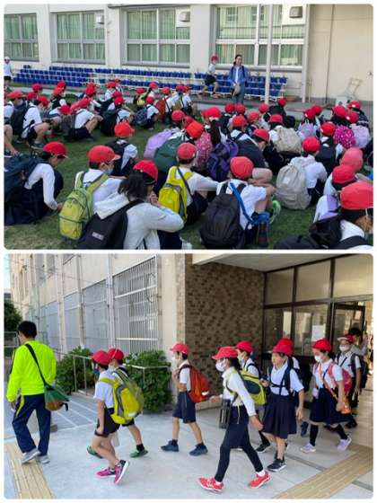 公共のルールやマナーを守りながら、目的地へ移動しています。とても素晴らしい態度です。さすが、東粉浜の高学年です。