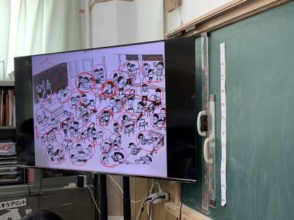 子どもたちの身近な教室でおこりうることで、イラストからいじめだと思うところに丸をつけました。