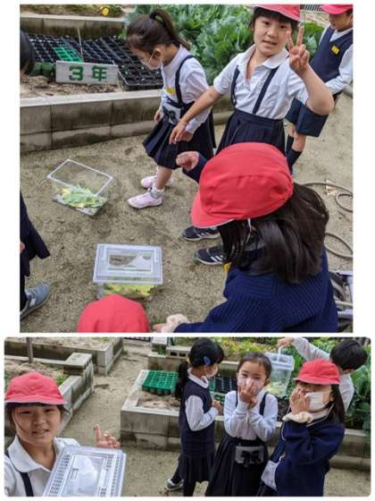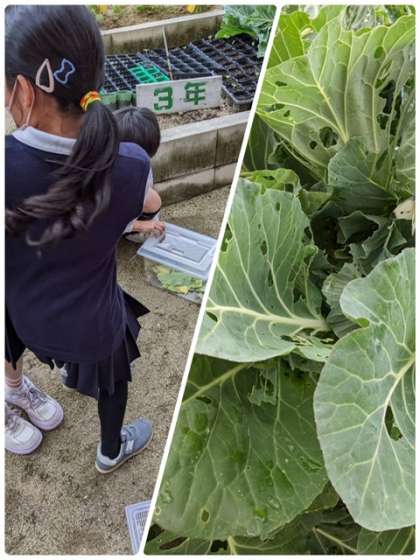 学習園のキャベツにいた幼虫を成虫になるまで観察しました。