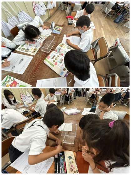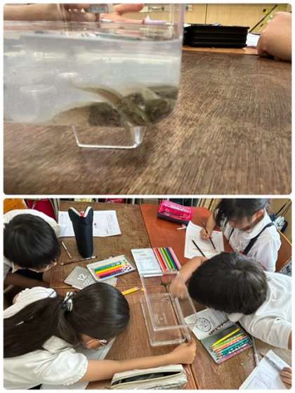 生活科の学習として、おたまじゃくしの観察をしていました。可愛い、という声もあがっていました。