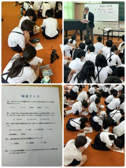 初めに、税に関するビデオを見た後、税について学び、最後はクイズ形式で振り返りをしていました。