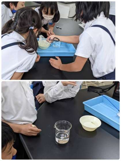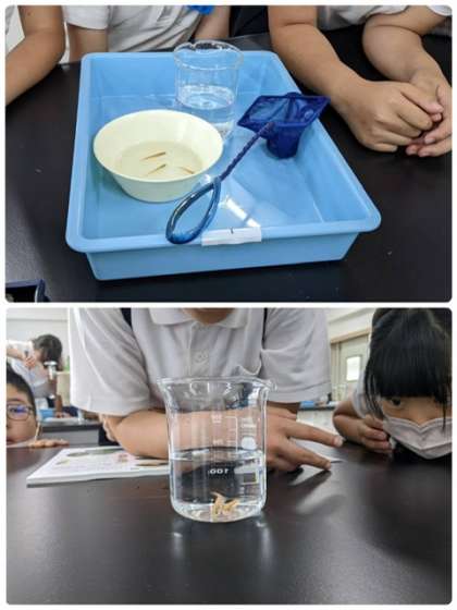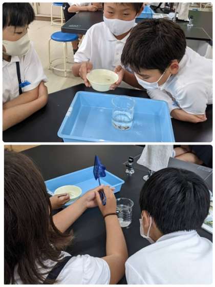 メダカの観察とオス・メスの区別をしました。飼いながらたまごが生まれるのを待ちます。