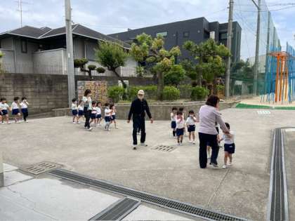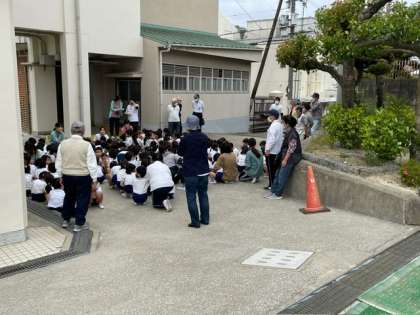本日の10時頃、東粉浜幼稚園の園児さんがハンカチで鼻や口を隠して、本校にやってきました。