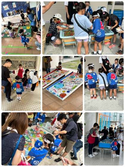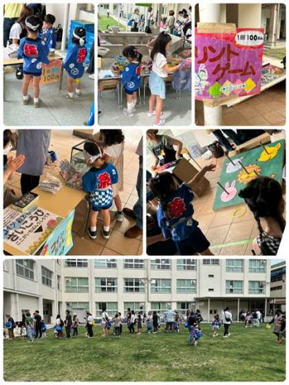10日、本校の運動場や中庭、ピロティを使って、東粉浜幼稚園が夏祭りを行いました。