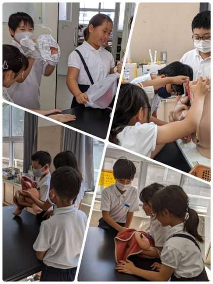 へそのおはこれくらいの長さなんかな?かわいい、それじゃ赤ちゃん落ちてしまうやん、など見て触って気づいたこともありました。