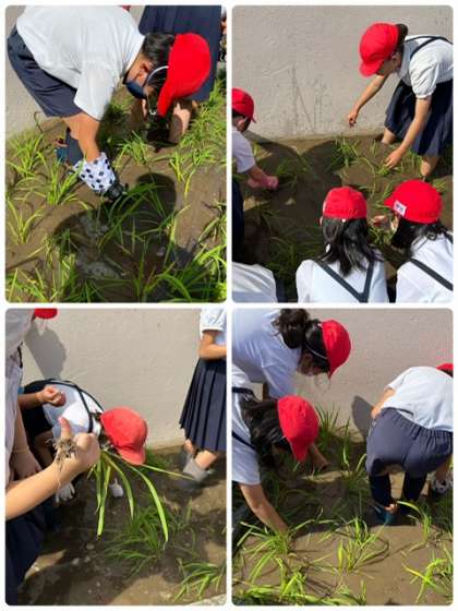 長靴をはいていたけれど、やっぱり裸足になる!と泥の感触を楽しんでいました。今日は晴れて暑かったので、気持ちよかったです!